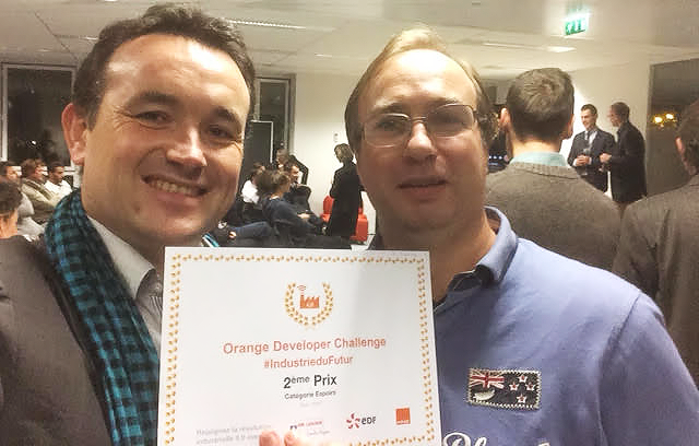 L’Orange Developer Challenge est un événement invitant les entreprises, développeurs et passionnés d’innovation à relever les défis industriels d’Air Liquide, EDF et Orange. Sous le signe de “l’Industrie du Futur”, cet événement avait pour objectif de faire émerger des solutions innovantes pour les entreprises clientes et partenaires d’Orange.