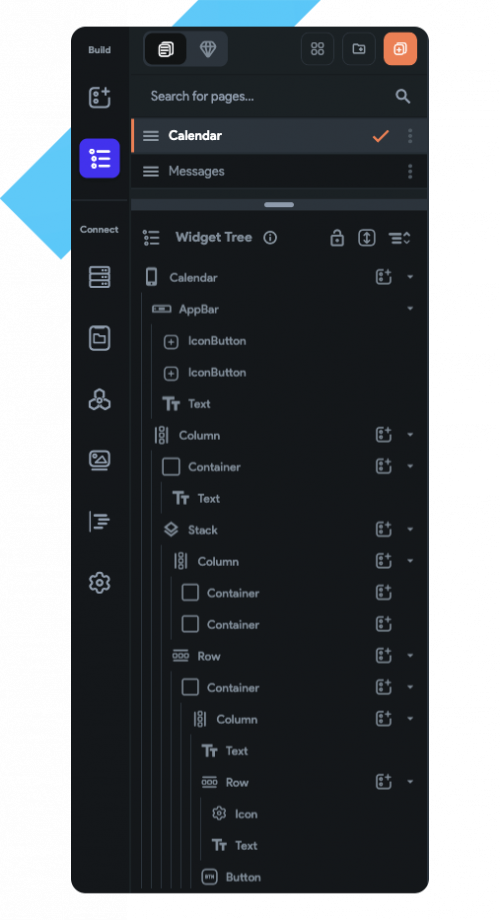 La prise en main de l’outil est vraiment agréable et simple, tout est assez intuitif. Le drag-and-drop fonctionne parfaitement bien, et la construction de l’application se fait assez rapidement. Nous avons la possibilité de voir l’arborescence de nos composants avec le Widget Tree qui est très bien fait. Il est possible de dupliquer des éléments, et de les déplacer directement dans le Widget Tree ce qui est très pratique.