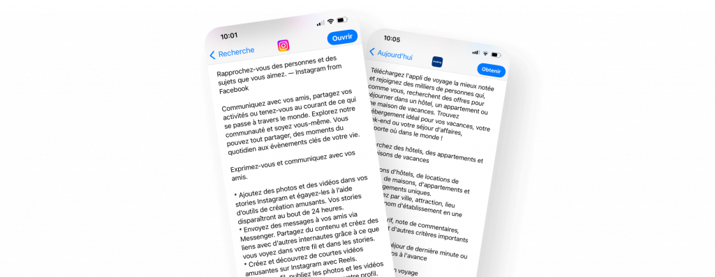 Profitez de ces quelques lignes pour mettre en avant sa valeur ajoutée. Utilisez les descriptions à bon escient en y intégrant les mots-clés qui caractérisent le mieux votre app et son domaine.